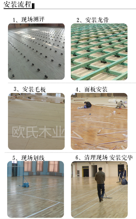 歐氏木業體育運動木地板安裝流程圖: