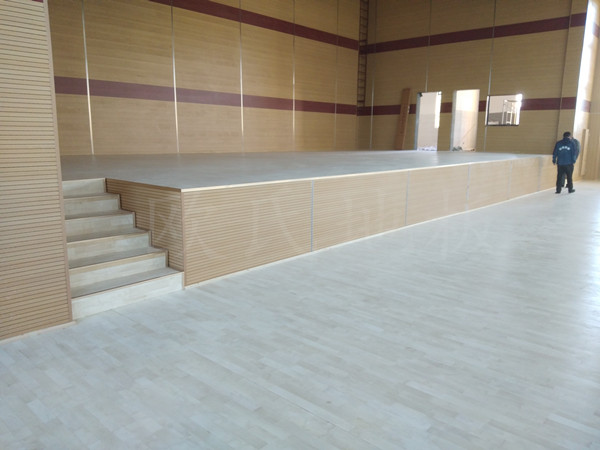 該場館 鋪設面積1200平 ,采用主副龍骨結構,選用的是楓樺A板 。